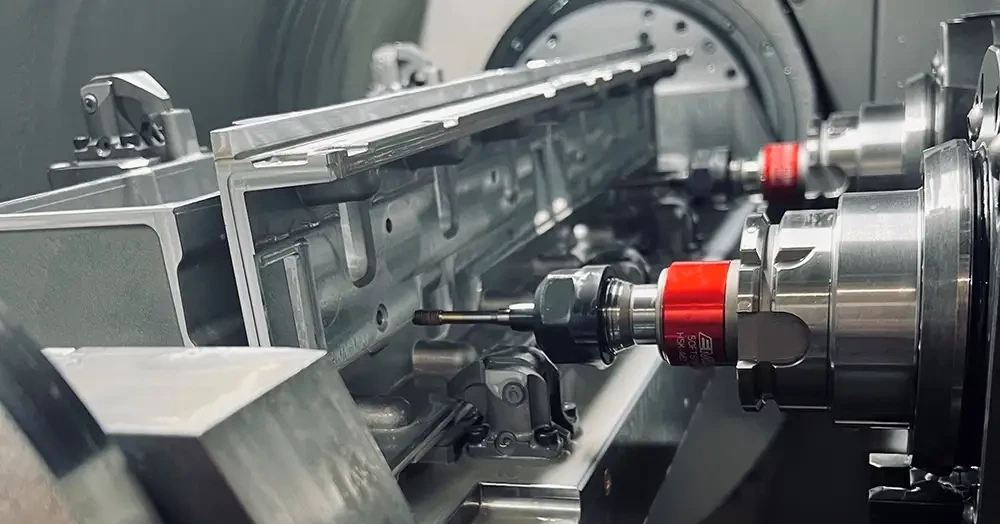Vu de l'intérieur d'un centre d'usinage bi-broches SW