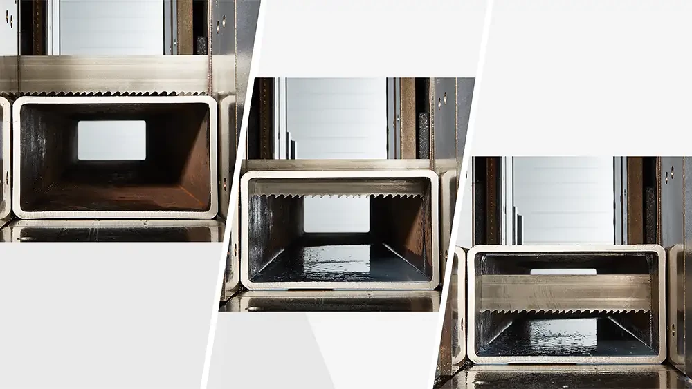 Qu'il s'agisse d'usiner des pleins, des tubes ou des profilés, à l'unité ou en paquet, KASTOrespond assure un réglage optimal de la machine à scier. Le système mesure en continu les forces exercées sur l'outil et traduit les données obtenues en vitesse d'avance numérique appropriée, sans avoir recours à des capteurs supplémentaires. KASTOrespond reconnaît alors à temps les différentes épaisseurs de paroi, les longueurs d'engagement variables ou les zones de matière particulièrement dures et en tient compte automatiquement. Pour l'opérateur, cela réduit les efforts à la saisie de paramètres moins importants tels que la longueur des sections, le nombre de pièces et le matériau. Résultat : des temps d'intervention plus courts et une durée de vie de l'outil nettement plus longue.