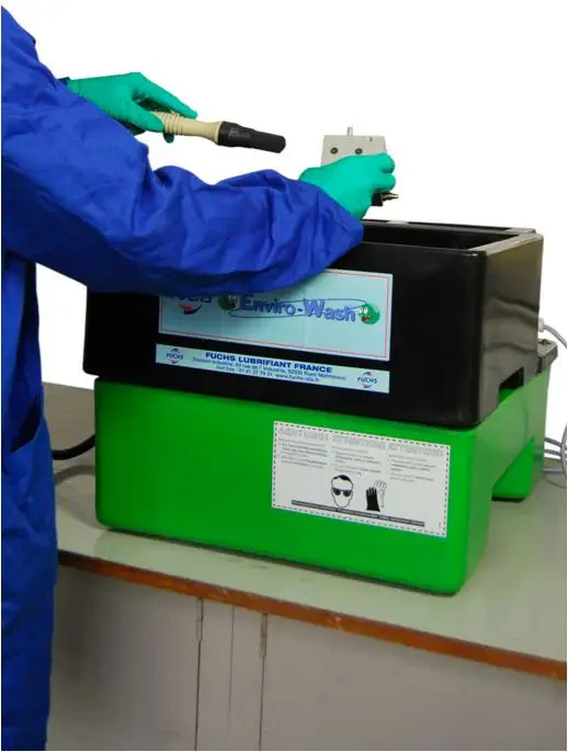 FUCHS LUBRIFIANT lance une nouvelle fontaine de nettoyage biologique de petite taille, à placer sur un établi ou en sortie de ligne de production, pour les petites opérations de nettoyage : contrôle des pièces, nettoyage d’outillages ou d’instruments,…