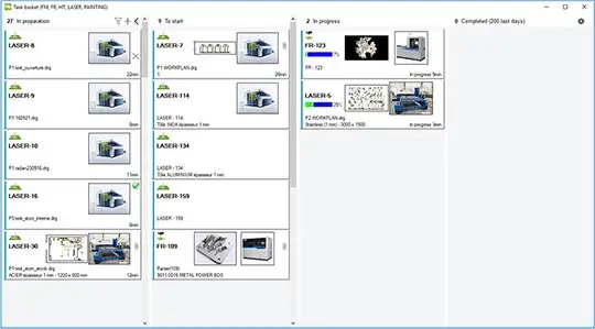 Désormais, durant la préparation de production, les utilisateurs peuvent créer un panier d'opérations regroupées par prestation, et gérer la répartition des coûts en fonction des besoins individuels. » La fenêtre de supervision permet de consolider, par opérateur ou par prestation, l’ensemble des paniers et des programmes en attente, en cours ou réalisés. L'application fournit des informations en temps réel sur l'avancement, la documentation et le nombre de composants produits.