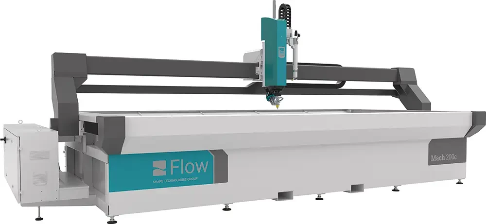Le Mach 200c offre à l'opérateur un accès sans précédent à la table de travail et permet d'améliorer vitesse et précision de découpe. Doté de la technologie de jet d'eau Pivot+™, le Mach 200c permet la découpe de pratiquement tous les matériaux, durs ou tendres, en chanfrein et en 5 axes et avec jusqu'à 60° de mouvement, pour répondre aux besoins de découpe de pièces complexes.