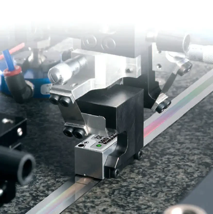 A la stabilité inhérente à l'INVAR, coefficient d'expansion < 1.4 µm/°C, s'ajoute un faible niveau d'erreur d'interpolation, inférieur à ± 40 nm et une précision de gravure de ± 1 µm sur 1 mètre.