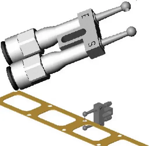 Le système PEL, permet, en plaçant une petite fourche pneumatique dans l'outil, de résoudre tous les problèmes, car un jet d'air (faible pression), nettoie le trou à contrôler en même temps qu'il le détecte, d'où suppression des arrêts non justifiés et fiabilité de la détection.