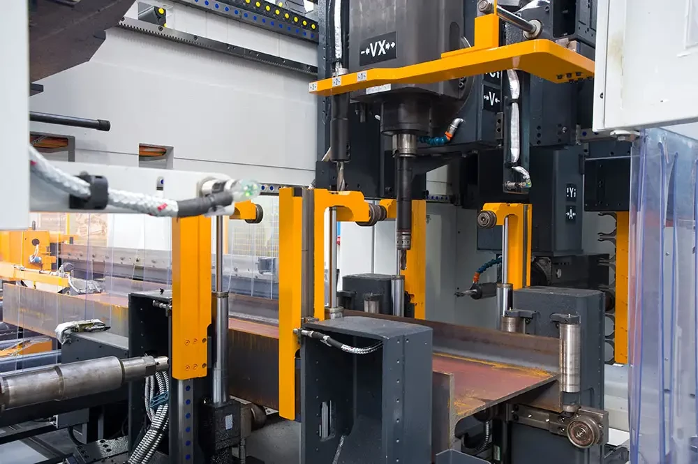 Cette ligne est équipée de la nouvelle unité de sciage Katana, qui autorise des vitesses de débit plus importantes que les anciennes générations : par exemple, la coupe d’un HEA de 300 est réalisée en 26 secondes.