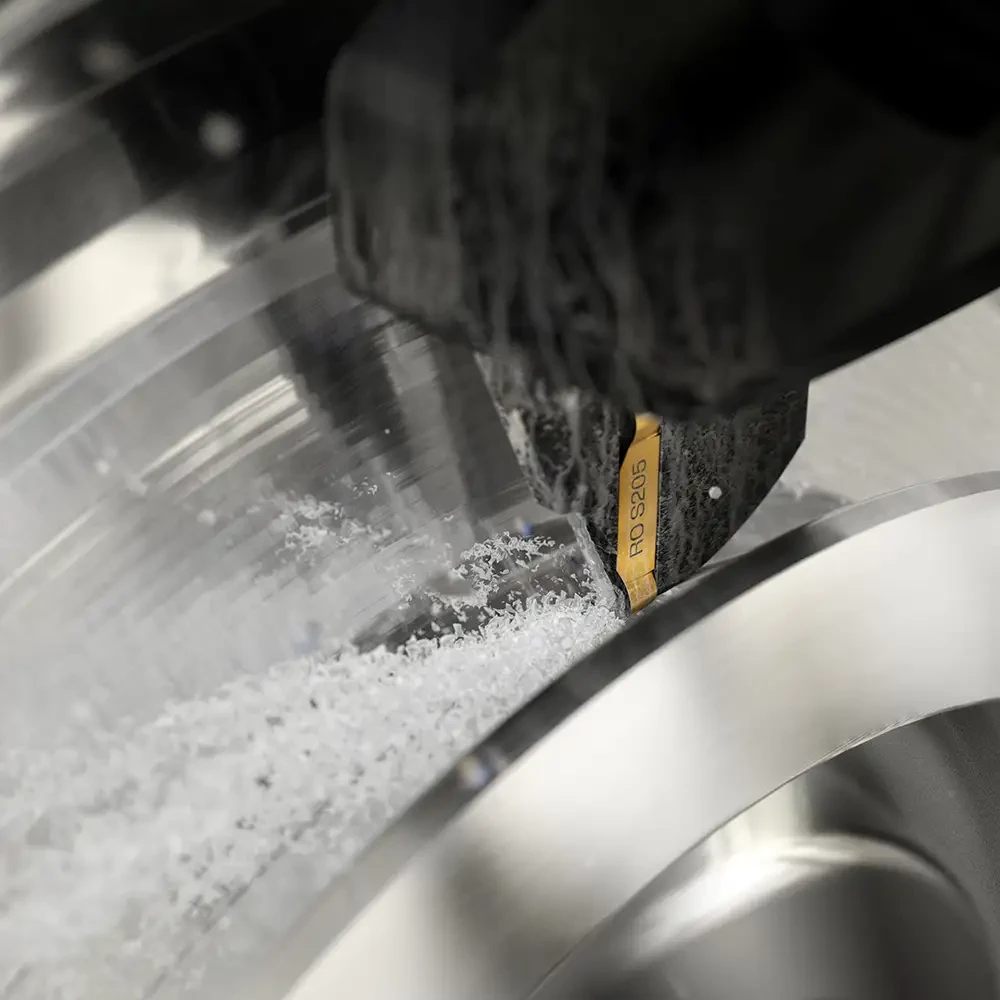 La géométrie de profilage rectifiée -RO (parfaite pour les opérations de finition dans les superalliages réfractaires à base de nickel) fait désormais partie de la famille CoroCut® 2. De nouvelles nuances et une interface à rail stabilisatrice améliorent la résistance à l'usure et la précision dimensionnelle, permettant ainsi des tolérances serrées et une qualité de surface constante. Comme Jenny Claus, Product Manager de la branche Tronçonnage et rainurage chez Sandvik Coromant, nous l'explique, « la géométrie -RO est depuis bien longtemps la plaquette la plus populaire du concept CoroCut® 1-2 grâce à son tranchant, ses tolérances serrées et la qualité de ses arêtes – une combinaison cruciale pour façonner les pièces de l'aéronautique. »