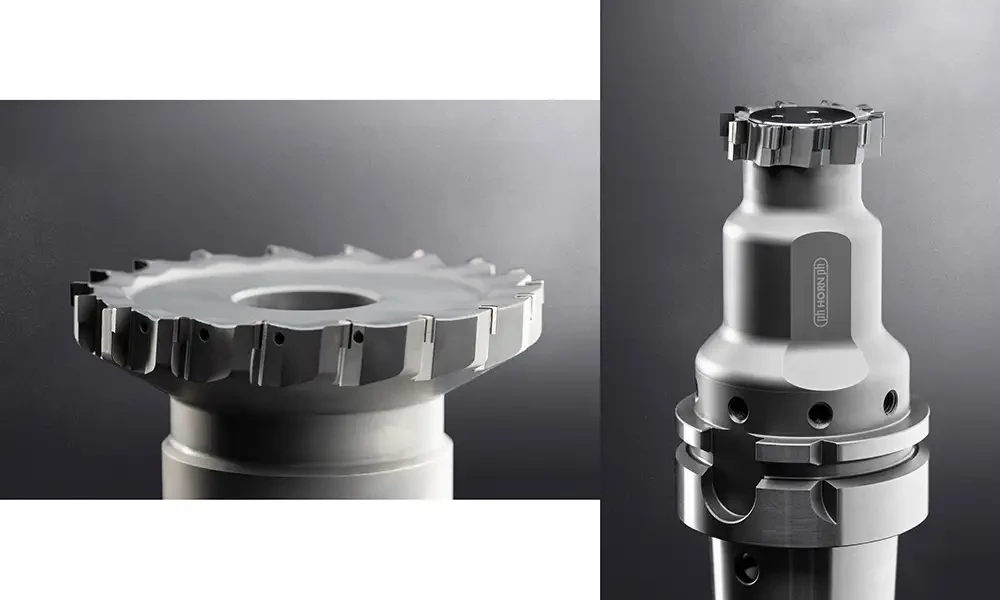 • DM70 : HORN a développé cette série spécialement pour les opérations de surfaçage. Le système permet d’obtenir des qualités de fraisage et de surface élevées dans des plages de diamètres réduites. L'interface de contact précise entre la face et le cône MDR garantit des surfaçages de l’ordre du µ. Le remplacement simple et rapide de la fraise à montage PCD par un porte-outil en carbure est adapté aux processus de production allégés et aux installations de production automatisées.