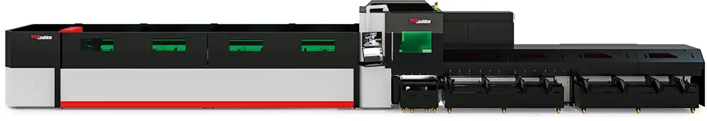 Grâce à un système de chargement et de déchargement automatisé, sa nouvelle conception augmente non seulement la vitesse et la flexibilité de la machine, mais réduit également les pertes liées aux chutes de matière. Cette automatisation permet une autonomie totale de la machine, avec une nette augmentation de la productivité, de la vitesse et de l’efficacité.
