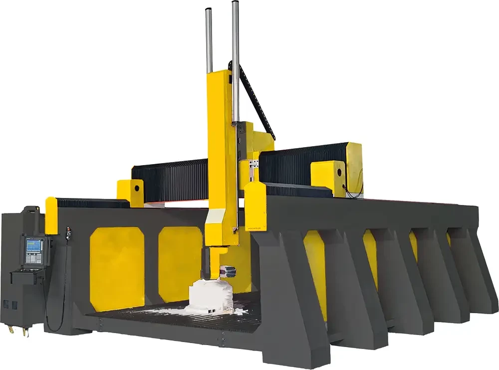 Fraiseuse pour l’usinage de grands volumes en 3D (bois, plastique, métaux non-ferreux). La possibilité d’ajouter un 6ème et un 7ème rotatifs sur la table en fait une machine puissante. Il n’existe pas de limite de dimensions.